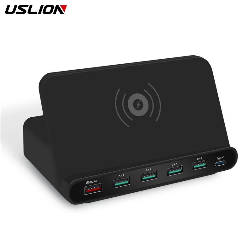 Best Product USLION 60W Qi Wireless Charger For Iphone X XS MAX Multi USB Cargador Movil Quick Charge 3.0 Fast C