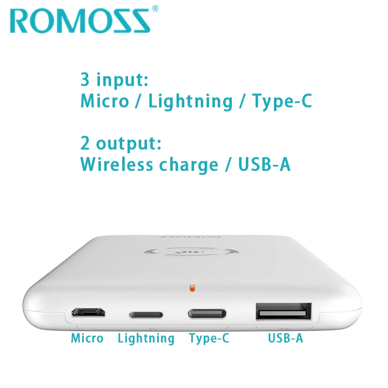 Hot Sale ROMOSS Wireless Charge Power Bank 10000mAh External Battery Backup Power Wireless Charger for iPhon