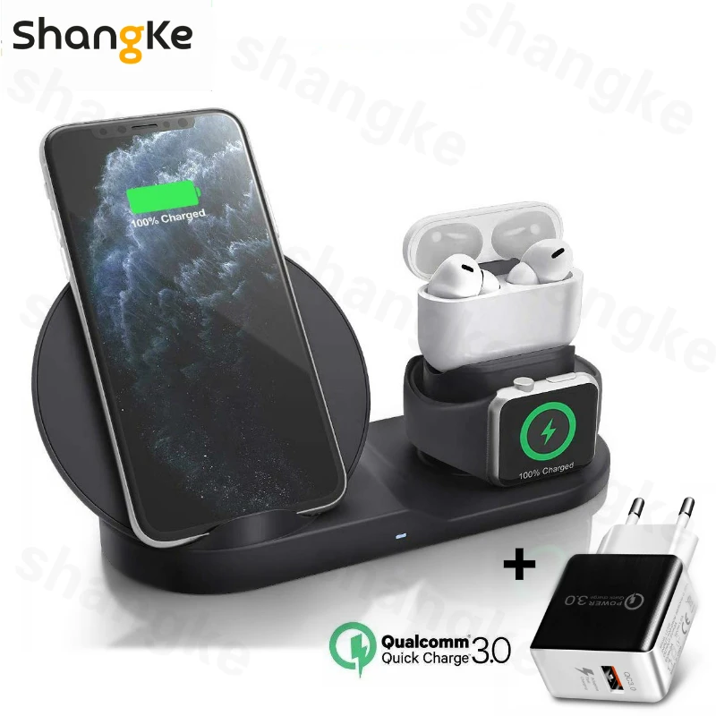 New Fast Charging 3 In 1 Qi Wireless Charger for Apple watch 1 2 3 4 Airpods For iPhone XS Max XR X 8 Plus Samsung S9 S8 Note 9