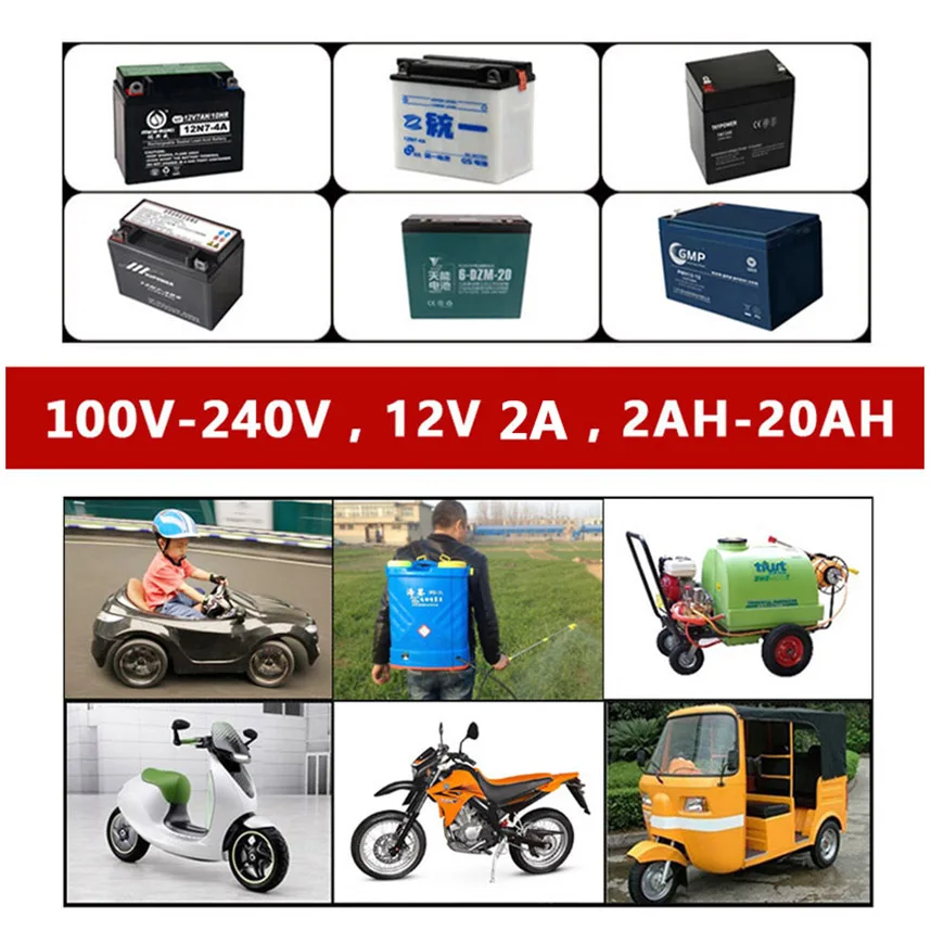 12V 1000ma Smart Lead Acid AGM GEL Battery Charger for Car Motorcycle DC 12 V Volt 1A 220V Motor 4ah 7ah 10ah 12ah 20ah Moto EU