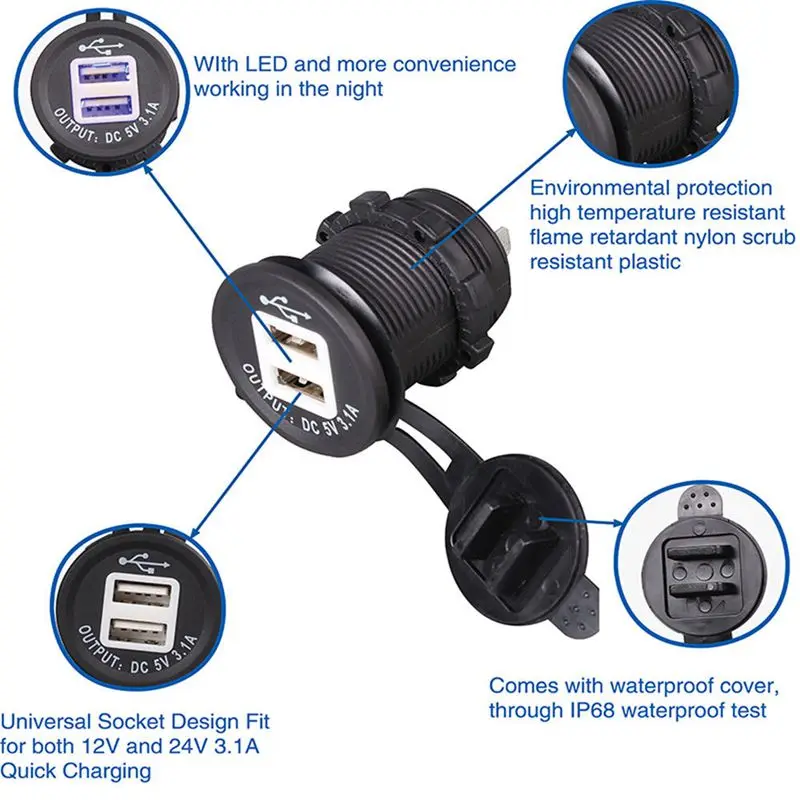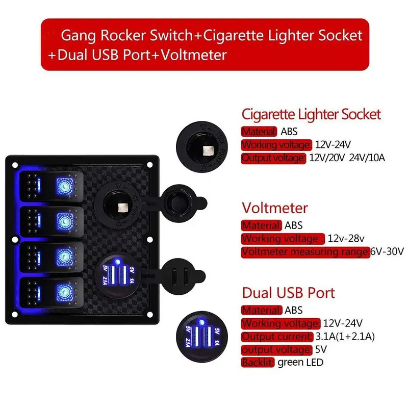 Buy Now 12V-24V 4 Gang Waterproof Auto Car Marine Boat Toggle Rocker Switch Panel 2.1A + 1A Dual USB Charge