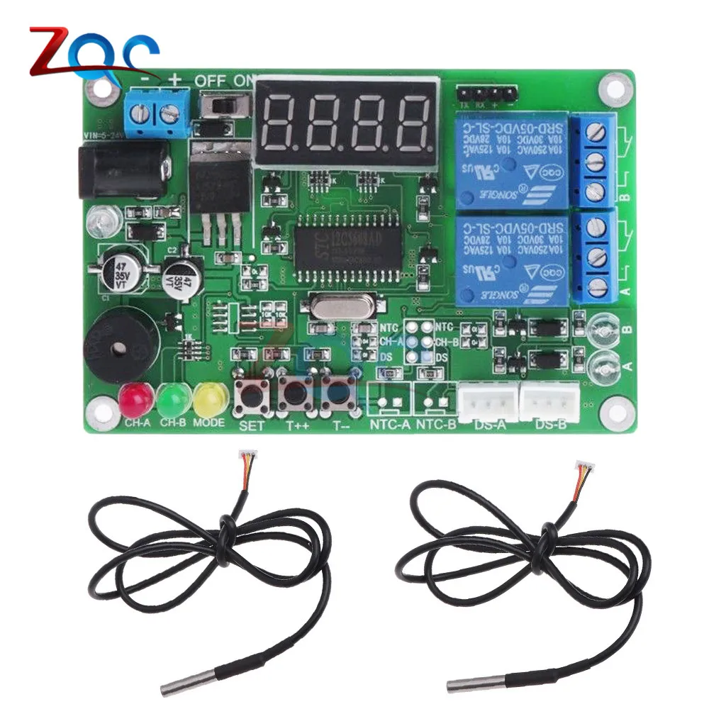 Buy Now DC 5-24V 2-CH High precision LED Digital Display Intelligent Temperature Controller Thermostat Ther