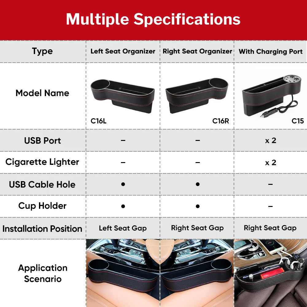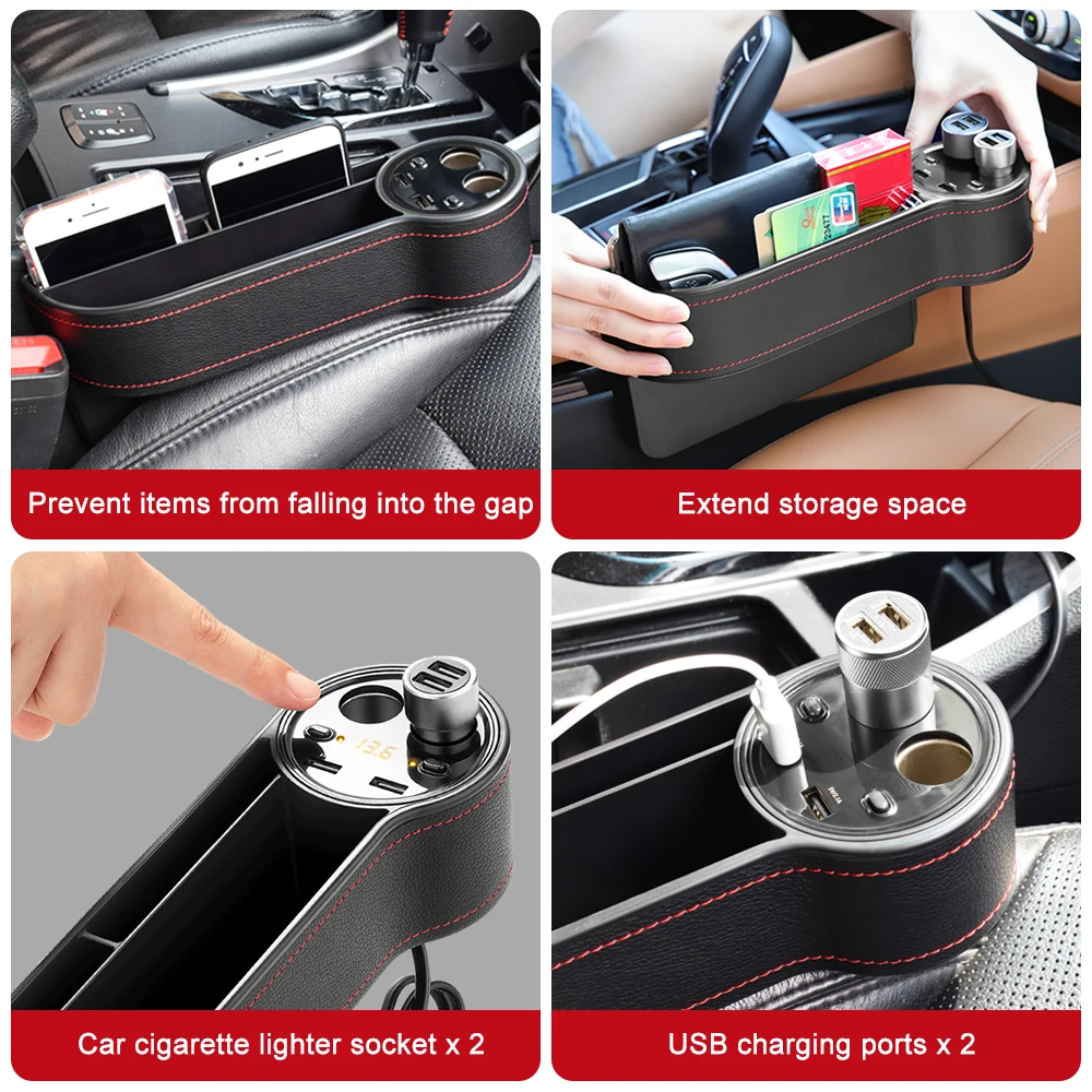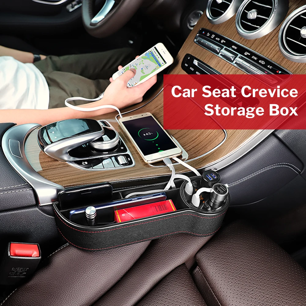 Buy Now Deelife Car Seat Organizer Gap Pocket PU Leather Crevice Storage Box with 2 USB Charger Auto Univer