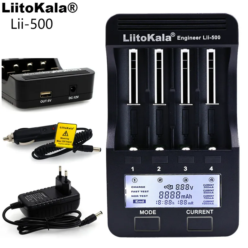Liitokala lii500 LCD 3.7V/1.2V AA/AAA 18650/26650/16340/14500/10440/18500 Battery Charger with screen+12V 2A Adapter USB 5V1A