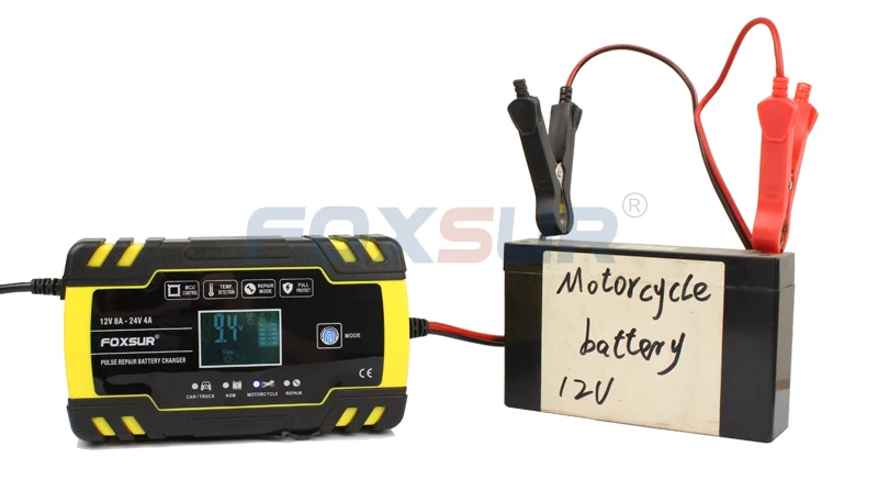Hot Sale FOXSUR 12V 24V Automatic Smart Battery Charger Maintainer Car Motorcycle Scooter Deep Cycle AGM GEL