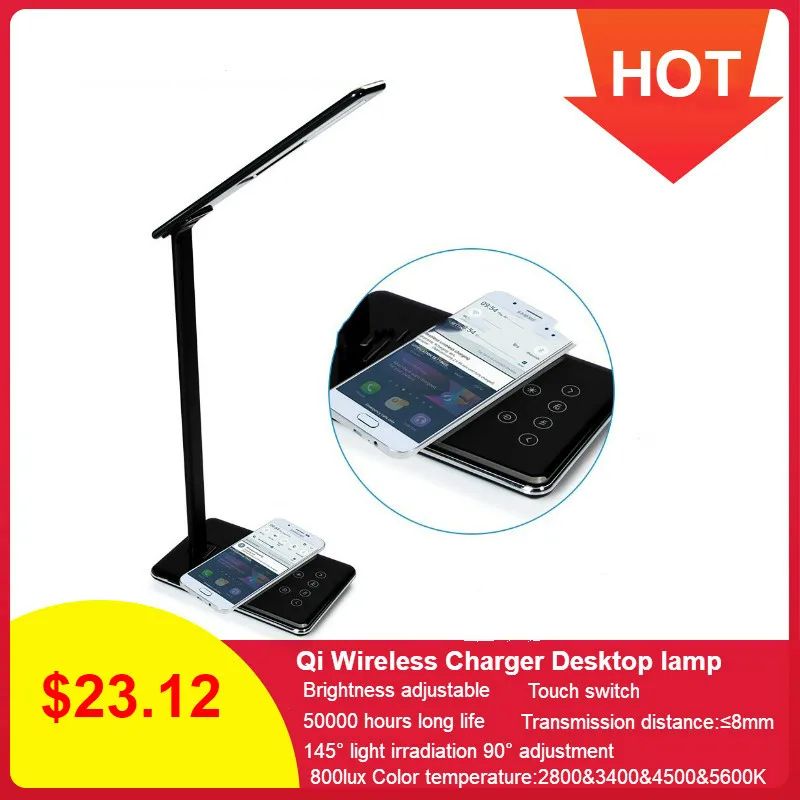 Best Product WD102 Qi Wireless Charger Lamp 45 leds Foldable Dimmable for iPhone Fast Charger Desktop Adapter fo